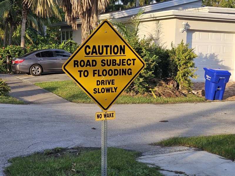 In Hollywood our house is in a flood area. Sometimes during periods of the 'King Tide' our house is completely surrounded by a moat. In the photo that gray car is in our driveway. This year they put up some signs in the neighborhood indicating that you are to drive down our street so that your car does not create a wake!!!